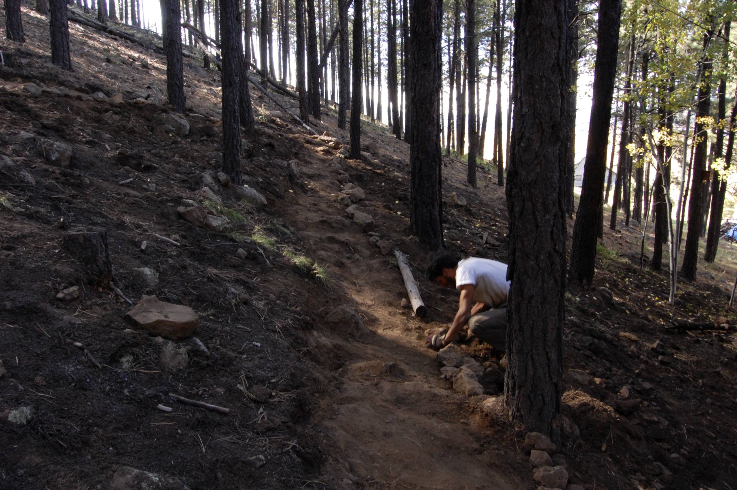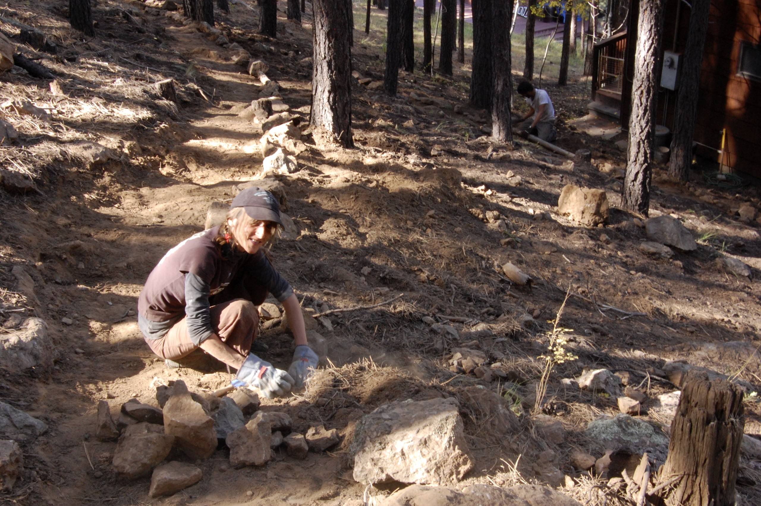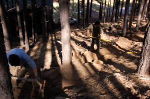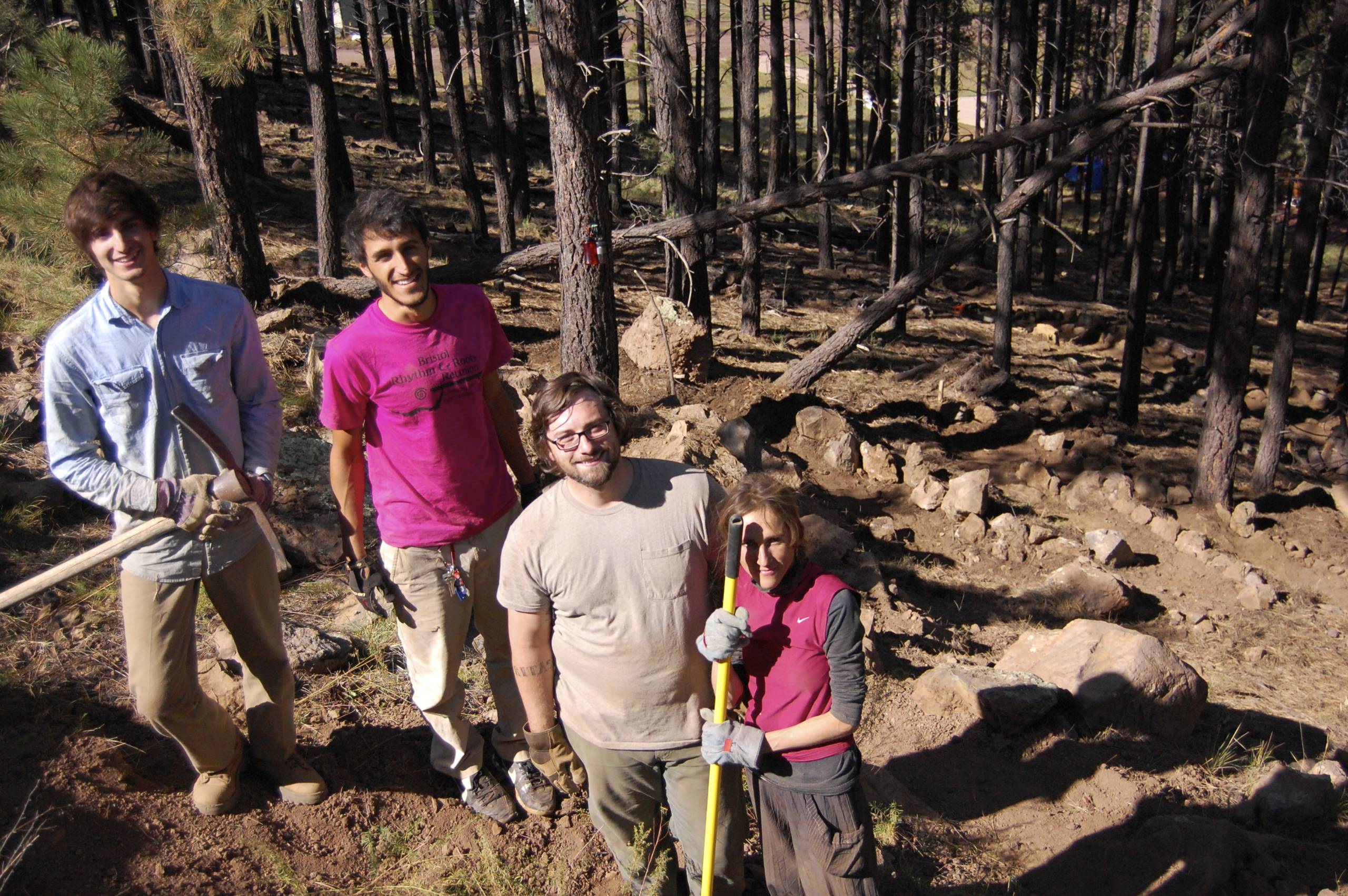 What a stellar crew! From the left; Steven from LA, Nico from Virginia, Kenny from Philadelphia, Stephanie from France. My first four WWOOFers and they have worked extremely hard for the last few days. They are always in good spirits and ready to work. I thought the trail going up the hill behind the house would take at least five days…it only took them two. Cleaning up all the layers of pine needles in a 30ft radius around the house only took ~60 garbage bags and a days worth of work.