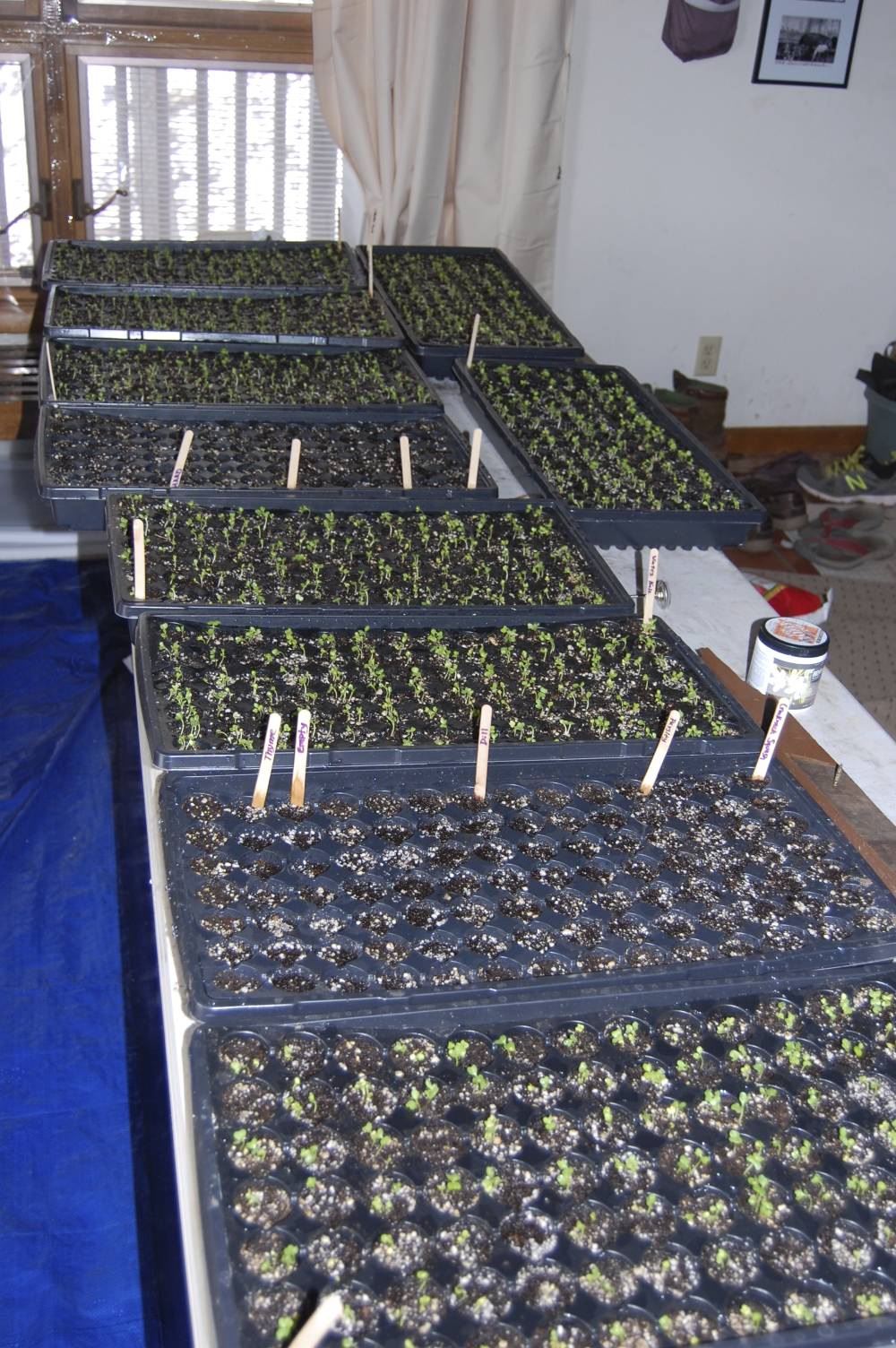 Aside from our fundraisers, a lot has been happening on site. We had the first two WWOOFers of the season, Nicole and Tianna, arrive last week. They have been extremely helpful in digging swales in the front field. These will slow water runoff so it infiltrates back into the ground. They have planted bulbs, flowers, onions, got our starts going, and helped in finishing the fourth hugelkulture. When it finally warms up and stops snowing, we will plant potatoes, lentils, and summer savory in that fourth hugelkulture. We have 800 starts of vates kale and 200 of lettuce, thyme, chard, dill, and squash. There is some lacinato kale planted in the hoop house and more trays are on their way so we can get peas, beans, more kale, and a bunch of herbs and medicinal plants started. Because of the short growing season, we need to have as many plants ready to go at the end of May, beginning of June.