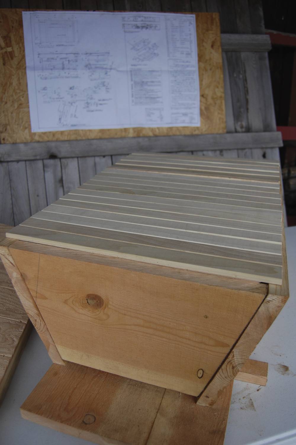 The golden mean beehive, made from Ponderosa Pine locally milled at AP Sawmill, is also ready to go; just finished today. Despite the cold wind and my poor carpentry skills, it looks pretty good and I think next week when the bees arrive, they will be happy to have a home. We are going to start them in Cottonwood or Camp Verde where it is warmer and they will have access to more pollen, then bring them up here in June or July.