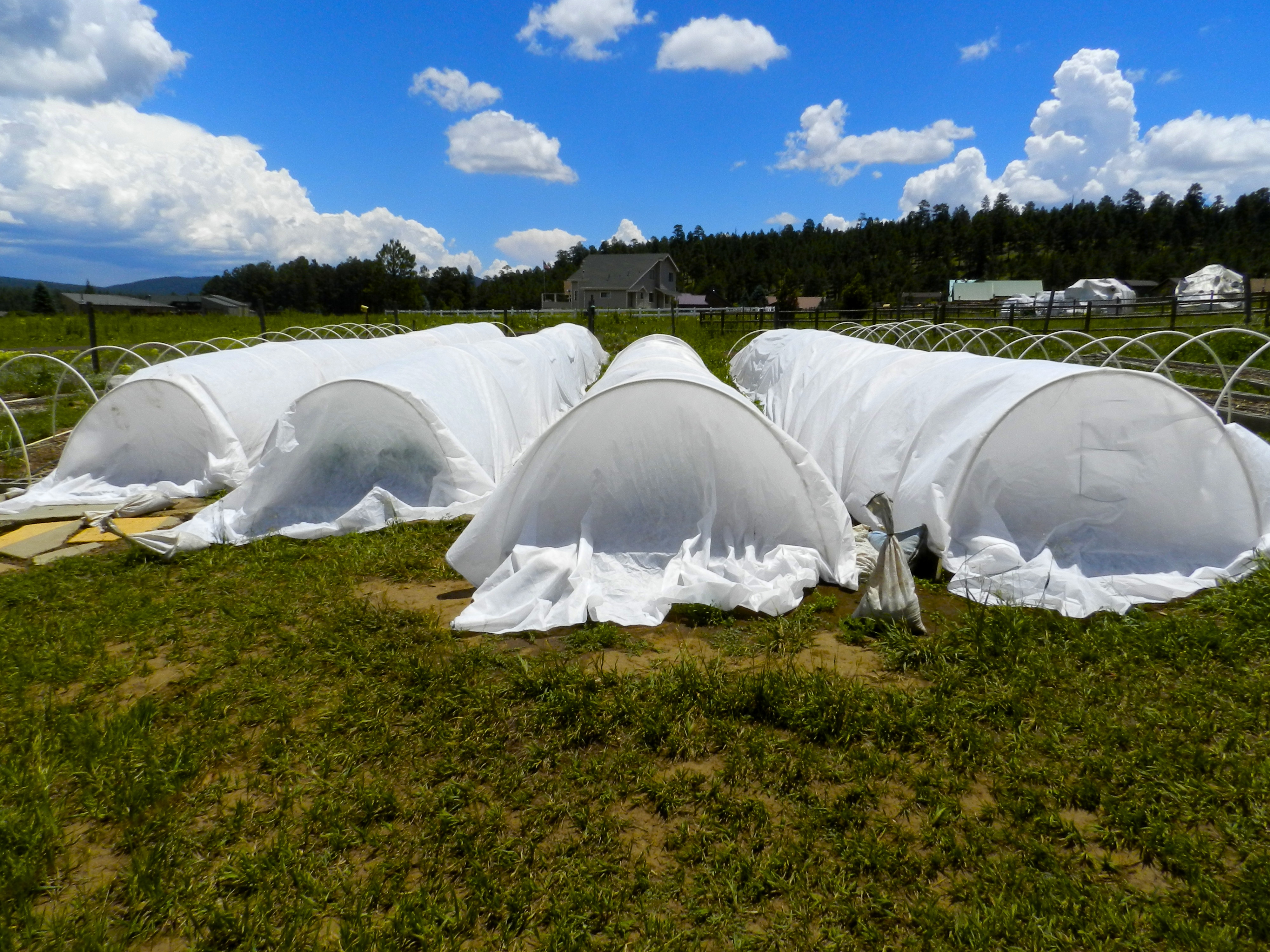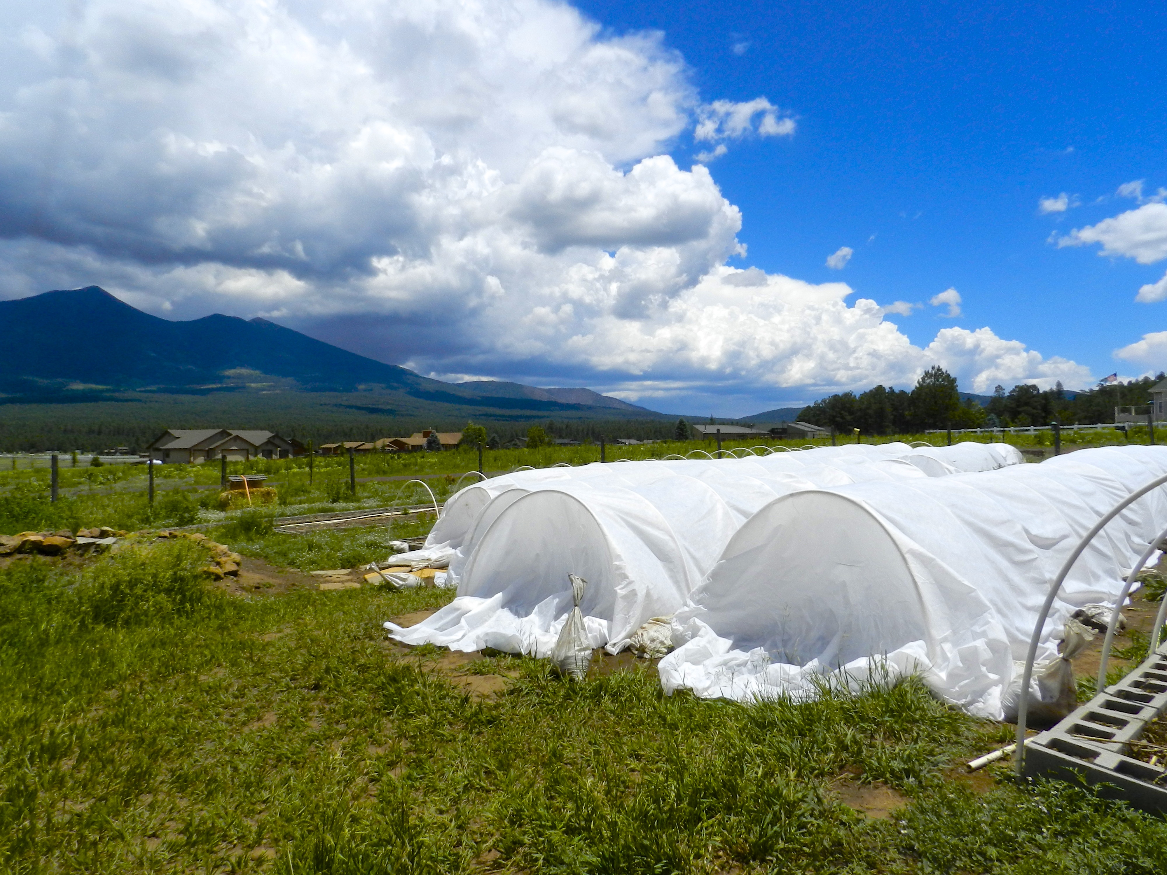 The row cover offers about a 7 degree buffer from outside temperatures. This addition to the beds will extend our growing season on the tail ends while offering protection from frost and hail and can be used as a shade cover during June.